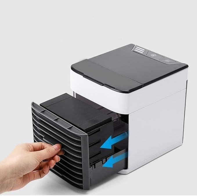 Small Air Conditioner, Humidifier, Purifier, 3 Fan Speeds, Color LED Lights, Evaporative Air Cooling, Mini AC USB Cooling Fan-EA-215, White-Gray